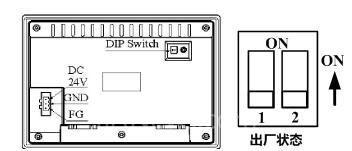 設(shè)置DIP Switch處于不同的位置可使HMI系統(tǒng)處于不同的工作模式,要進(jìn)入系統(tǒng)設(shè)置界面,只要將HMI背面的DIP開關(guān)SW1、SW2都置于ON位置即可進(jìn)入。