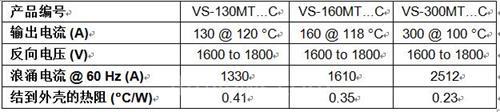 引言:Vishay推出新系列三相橋式電源模塊,該器件的電流為130A~300A,隔離電壓達(dá)1800V,熱電阻低至0.23℃/W,采用5接頭MTC封裝。