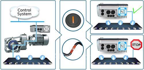 圖解:如果中央控制系統(tǒng)遭遇人為或意外斷開,諾德變頻器PLC可通過預(yù)編程程序保持應(yīng)用持續(xù)運行或使其處于自定義停機狀態(tài)