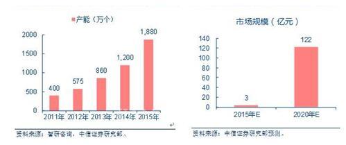 圖4:至2020年,中國攝像頭市場規(guī)模超120億。