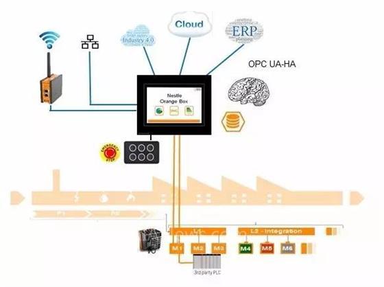 除了基礎(chǔ)的通信,必須有應(yīng)用集成于霧計(jì)算/邊緣計(jì)算的節(jié)點(diǎn),OrangeBox提供了一個(gè)針對這樣的通信集成網(wǎng)關(guān),將OEE功能、能源功能、顯示功能集成于OrangeBox,貝加萊提供了針對產(chǎn)線-無論是新建(Greenfield)還是老的產(chǎn)線-Brownfield均可實(shí)現(xiàn)數(shù)據(jù)的訪問與傳輸。