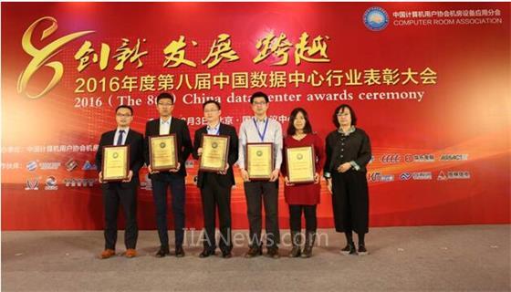 施耐德電氣合作業(yè)務(wù)中國(guó)事業(yè)部低壓成套設(shè)備產(chǎn)品經(jīng)理李騫(左二)代表施耐德電氣領(lǐng)取2016年度中國(guó)數(shù)據(jù)中心用戶滿意產(chǎn)品獎(jiǎng)