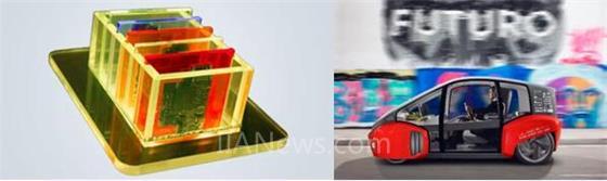 文字說明:浩亭miniMICA安裝在Rinspeed的“Oasis”概念車上(右)。
