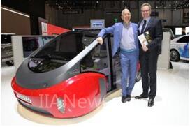 文字說明:Rinspeed AG首席執(zhí)行官Frank M. Rinderknecht (左)和浩亭溝通與公共關(guān)系總經(jīng)理Detlef Sieverdingbeck。他們身后為“Oasis”概念車。