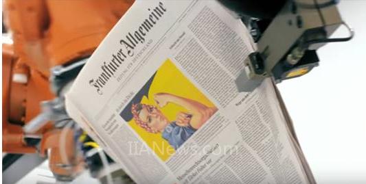 現(xiàn)在大家一定知道KUKA這是在為誰家拍廣告了。沒錯(cuò),正是德國(guó)報(bào)紙“Frankfurter Allgemeine”法蘭克福匯報(bào),簡(jiǎn)稱FAZ。