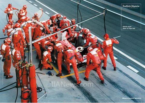 你沒猜錯(cuò),這句話就是廣告主題,也是FAZ自1964年以來一直使用的宣傳語。然而更關(guān)鍵的是,為了給予這句話,更深刻生動(dòng)的表現(xiàn),同時(shí)使這份報(bào)刊媒體的對(duì)外形象更豐滿。自1995年來FAZ不斷邀請(qǐng)德國(guó)政界、科學(xué)、經(jīng)濟(jì)、文學(xué)、藝術(shù)、影視、體育等不同領(lǐng)域具有特殊影響力,作出突出貢獻(xiàn)的重量級(jí)人物拍攝了一系列一次為主題的照片以及一部花絮。其中既有德國(guó)政壇泰斗級(jí)人物赫爾穆特·施密特、前總理科爾、前外交部長(zhǎng)費(fèi)舍爾、也有我們熟悉的F1賽車手舒馬赫,拳擊運(yùn)動(dòng)員維塔利·克利奇科,甚至于還有柏林交響樂團(tuán)和德國(guó)女子手球隊(duì)。至今有87個(gè)個(gè)人和團(tuán)體接受了邀請(qǐng)。