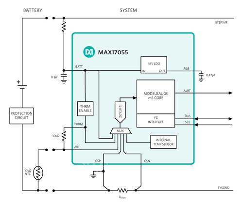 電量計(jì)的主要優(yōu)勢之一,在于它能夠幫助系統(tǒng)開發(fā)人員判斷電池電量變低時(shí)關(guān)閉設(shè)備的時(shí)間。如果電量計(jì)過高低預(yù)估了電池壽命,則當(dāng)電壓降至設(shè)備工作電壓以下時(shí),可能無法正常關(guān)閉設(shè)備,從而導(dǎo)致意外故障;而如果設(shè)計(jì)人員過早關(guān)閉系統(tǒng),則會(huì)縮短設(shè)備正常運(yùn)行時(shí)間,這對于用戶來說是非常不可取的。通過提供最精確的電量計(jì)——在大多數(shù)情況下保障小于1%的電量狀態(tài)(SOC)指示誤差,MAX17055允許設(shè)計(jì)人員在保持最長設(shè)備運(yùn)行時(shí)間的基礎(chǔ)上制定關(guān)機(jī)計(jì)劃。