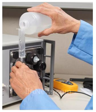 5128A 只需使用純凈蒸餾水即可工作,無需壓縮空氣或其他附加液體。前面板提供液位指示,顯示濕度發(fā)生器內(nèi)的液位狀態(tài)。當(dāng)液位低于最小值時(shí),只需向儲液罐中加注純凈蒸餾水即可。