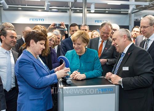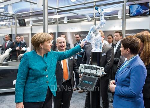 2017年24-28日,全球最大的工業(yè)展-德國漢諾威工業(yè)博覽會在漢諾威舉行。開展首日上午,德國聯(lián)邦總理默克爾到訪Festo展臺 (15號館D11)。 波蘭總理席多陪同參觀。波蘭是2017 漢諾威展的合作伙伴國。 Festo氣動領(lǐng)域的革命性技術(shù)-Motion Terminal (數(shù)字控制終端)首次亮相展會。 同時(shí)亮相的還有來自Festo仿生學(xué)習(xí)網(wǎng)絡(luò)的最新項(xiàng)目: BionicCobot (敏感的人機(jī)協(xié)作幫手), BionicMotionRobot (具有自然運(yùn)動特性的輕型機(jī)器人 ) 以及OctopusGripper (從自然界章魚觸手獲取靈感的抓持器)。