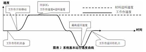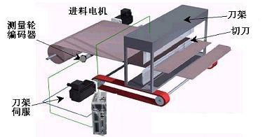 追鋸特點:送料軸保持勻速單向送料,“刀架”伺服電機在切割臺上做往復運動,在同步區(qū)域內(nèi)與送料軸速度達到同步,同時完成切割動作,然后反向回到原點,再次追蹤同步切割,切割方式可以為氣動控制,也可以為電鋸控制,因而又作追鋸之說。
