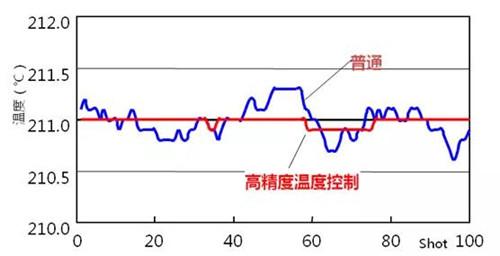 高精度溫度控制,采用穩(wěn)定可塑化的新型穩(wěn)定控制模塊,有效控制溫度的波動率(見下圖中紅色曲線)。