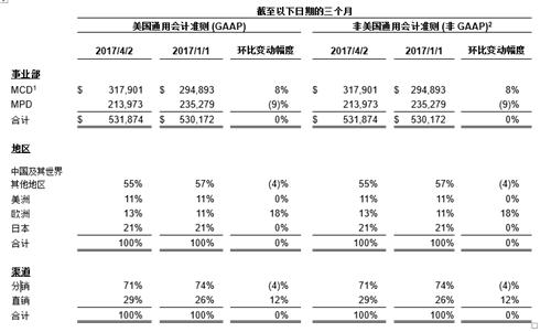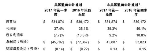 = 2017 年第一季度總營收為 5.319 億美元,超過收入預(yù)估
