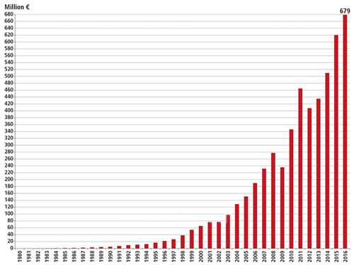 德國倍福 2016 財年全球銷售額達到了 6.79 億歐元,較上一年增長了 9.5%。倍福能夠取得這一驕人成績,主要歸功于持續(xù)的新產(chǎn)品開發(fā)、全面的市場開拓和強大的分銷網(wǎng)絡(luò)?!拔覀儗救〉玫倪@些業(yè)務(wù)成果非常滿意。盡管與上一年度取得的 22 % 的增長相比,這一增長率并不算高,但相對于整個自動化行業(yè)增速放緩的發(fā)展來說,這一增長率還是相當(dāng)可觀的?!惫究偛?Hans Beckhoff 如此說道?!叭艚Y(jié)合過去兩年的增長情況來看,我們的年均增長率為 15%,表現(xiàn)可謂不俗。”