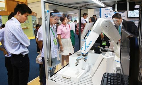 圖2 臺達工業(yè)機器人聯(lián)網(wǎng)智能工作站引起了參展觀眾的濃厚興趣