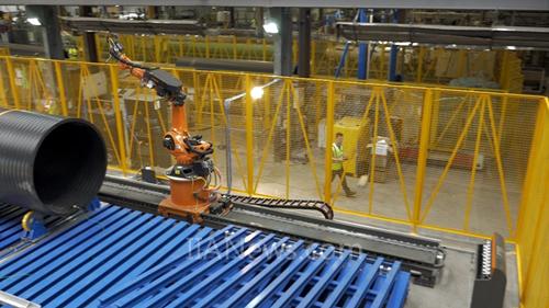 坐落在 Bad Liebenzell 的 Eugen Riexinger GmbH & Co. KG 公司開(kāi)發(fā)出了一種高度整合型的,加工巨型管道的自動(dòng)化解決方案,這種解決方案在 Weholite 授權(quán)的 Asset International. 公司的工廠里進(jìn)行生產(chǎn),地點(diǎn)在威爾士的 Newport 市。為適應(yīng)這樣的生產(chǎn)要求,KUKA 不但提供了 KUKA 120 R2700 extra HA 型機(jī)器人,還提供了 KL 1500-3 型線型單元。此外還有兩臺(tái)用于外接旋轉(zhuǎn)軸的 MG 360 型的 KUKA 伺服電機(jī),和 KUKA CNC 加工控制軟件?!斑@是我們首次嘗試自動(dòng)化解決方案?!?Asset International 公司的運(yùn)營(yíng)經(jīng)理 Graham Bennett 解釋說(shuō)。