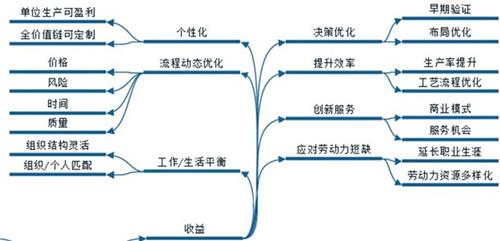 上述的收益圖是通過(guò)對(duì)德國(guó)政府2013年公布的“工業(yè)4.0實(shí)施建議最終報(bào)告”的內(nèi)容分析整理得來(lái)的。該報(bào)告在論述中將實(shí)施工業(yè)4.0的預(yù)期收益歸納為下述的七個(gè)方面: