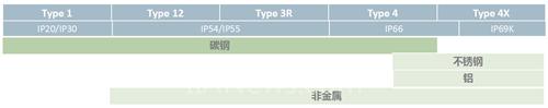 ● NEMA Type對于防塵防水要求較IEC IP嚴格,并列明結(jié)構(gòu)要求或防腐等級