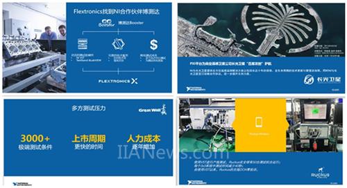 在本次大會(huì)上,NI展示了合作伙伴Booster幫助偉創(chuàng)力做可穿戴智能手環(huán)的測試,他們使用了基于矢量信號(hào)收發(fā)儀的PXI平臺(tái),結(jié)合LV和TS軟件,來完成當(dāng)前型號(hào)智能手環(huán)的測試,速度從 60s/pcs 提高到 45s/2pcs,PXI真正實(shí)現(xiàn)了幫客戶提升測試效率。