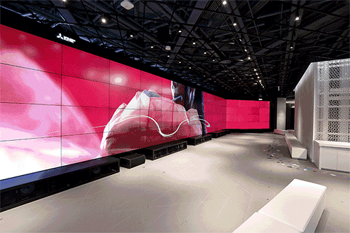 跟隨館內(nèi)的三菱電梯來到二樓,電梯門打開的瞬間,64面多媒體播放器中和太鼓的敲擊聲,又引領(lǐng)你走向另一個(gè)充滿律動(dòng)的世界。