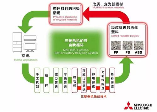 循環(huán)利用報(bào)廢家電中的塑料在技術(shù)上十分困難,三菱電機(jī)依靠塑料自動(dòng)篩選技術(shù),使得塑料實(shí)現(xiàn)“從家電到家電”的自我循環(huán)率由6%提升到了70%,增加了10倍以上哦。