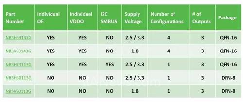 下表中列出了OmniClock系列所有的器件,并重點(diǎn)顯示了每個器件的不同特點(diǎn):