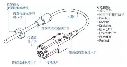 Temposonics RD型分體式傳感器,電子頭可與測(cè)桿分離,大大節(jié)約了油缸的安裝空間。