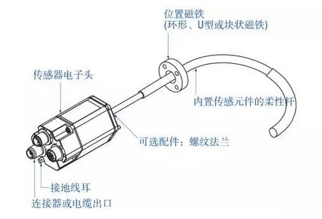 配置D53接口的Profibus DP輸出信號(hào)傳感器的多磁鐵應(yīng)用意味著檢測(cè)量程較長(zhǎng),RH硬桿傳感器的安裝運(yùn)輸都比較困難,可以采用RF柔性桿形式的傳感器,RF柔性桿形式的傳感器組成部件如下圖所示: