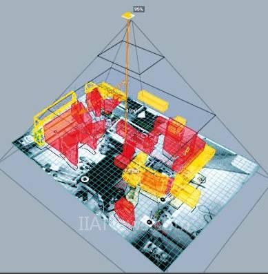 只需使用皮爾磁首創(chuàng)的3D照相系統(tǒng)SafeyEYE,將其置于機器人工位的頂部,即可對下方的整個區(qū)域進行監(jiān)控,并可將監(jiān)控區(qū)域劃分為警報區(qū)和保護區(qū),人員進入警報區(qū)會觸發(fā)報警,但機器人不會停止,而一旦進入保護區(qū),則機器人立即停止。