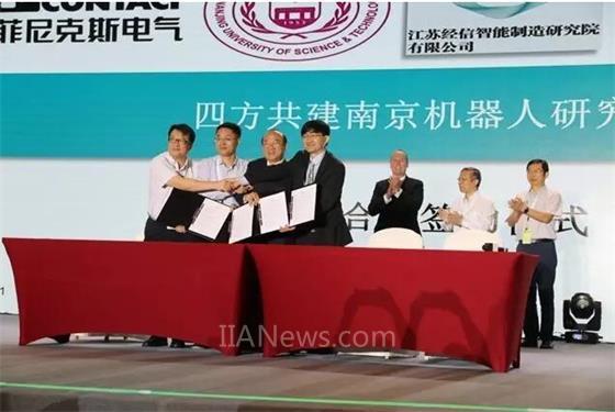 ? 菲尼克斯電氣,南京理工大學,江蘇經信智能制造研究院,南京市麒麟科技創(chuàng)新園四方簽署合作,共建南京機器人研究院。