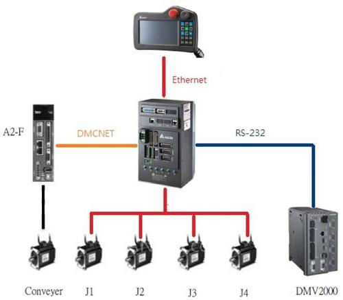 作為該系統(tǒng)解決方案的控制核心,臺(tái)達(dá)機(jī)器人控制驅(qū)動(dòng)一體機(jī)ASDA-MS系列,支持4軸,不用外加伺服驅(qū)動(dòng)器,即可直接驅(qū)動(dòng)4顆馬達(dá)。通過(guò)DMCNET總線,可擴(kuò)展至6軸,支持多種規(guī)格的IO擴(kuò)展模塊。同時(shí),ASDA-MS系列內(nèi)置Delta、SCARA等多種不同形態(tài)的工業(yè)機(jī)器人模型,提供臺(tái)達(dá)機(jī)器人語(yǔ)言,支持G Code輸入,規(guī)劃運(yùn)動(dòng)路徑軌跡,可滿足客戶不同應(yīng)用需求,亦方便客戶自行開發(fā)相關(guān)應(yīng)用工藝。另外,ASDA-MS內(nèi)建IEC61131-3 PLC簡(jiǎn)易排程功能,支持 5種編程語(yǔ)言以及PLCopen運(yùn)動(dòng)功能模塊,亦可通過(guò)手持示教器編寫運(yùn)行程序,快速監(jiān)控機(jī)器人狀態(tài)。
