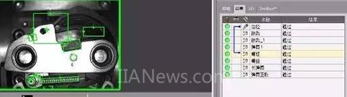 該程序使用康耐視定位圖案工具進(jìn)行定位,在根據(jù)不同的檢測要求,使用了檢測部件中的存在/不存在、測量工具以及數(shù)學(xué)邏輯工具等穩(wěn)定檢測車鎖各部位裝配情況。