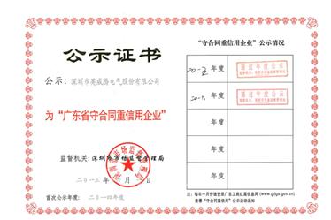 2017年6月,深圳市英威騰電氣股份有限公司榮獲由廣東省工商行政管理局頒發(fā)的2015-2016年度“守合同重信用企業(yè)”榮譽(yù)稱號(hào)。
