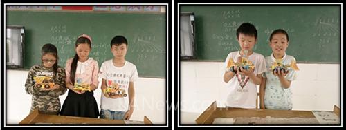 學(xué)生們展示自己制作的手工機(jī)械作品