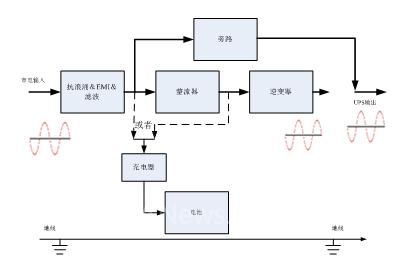 歐洲廠商生產(chǎn)的UPS基本都取消了變壓器,而在北美,無變壓器的UPS仍然是一個(gè)新事物,像APC這樣的廠商也采用了在線互動(dòng)式拓?fù)浣Y(jié)構(gòu),雖然沒有任何頻率的保護(hù),并不是技術(shù)上的“在線”式,盡管是這樣,這種架構(gòu)的UPS在穩(wěn)定的電網(wǎng)中仍然工作得很好。