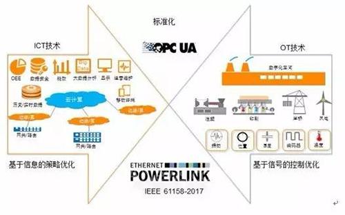 讓我們回到最開(kāi)始的圖,智能制造與工業(yè)4.0它實(shí)際上是兩個(gè)世界對(duì)話,IT和OT的對(duì)話,但它是三個(gè)世界的合作,這就是標(biāo)準(zhǔn)化。所以我站在這個(gè)講臺(tái)上,非常感謝標(biāo)準(zhǔn)化委員會(huì)還有ITEI,他們對(duì)于中國(guó)標(biāo)準(zhǔn)化的推廣、制定做的很多工作,因?yàn)槲覀冋f(shuō)兵馬未動(dòng)、糧草先行,標(biāo)準(zhǔn)化就是糧草,如果我們不了解世界的標(biāo)準(zhǔn),不了解我的產(chǎn)品該如何設(shè)計(jì)的話,那么我們未來(lái)的前瞻性就少了一大塊,我們未來(lái)產(chǎn)品的競(jìng)爭(zhēng)力就少了一大塊。所以說(shuō)從標(biāo)準(zhǔn)化角度來(lái)講,包括我們通訊的手段,OPC UA,包括和OPC UA相兼容的工業(yè)以太網(wǎng)POWERLINK技術(shù)—它已經(jīng)獲得了IEEE批準(zhǔn)為新的IEEE硬實(shí)時(shí)通信標(biāo)準(zhǔn)。