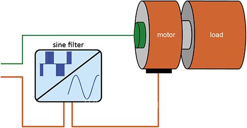 來自變頻器和伺服驅(qū)動(dòng)的電壓信號通常以方波形式輸出,具有很高的轉(zhuǎn)換速度。特別是在使用高速電機(jī)時(shí),如高速主軸電機(jī),過高的轉(zhuǎn)換速度可能導(dǎo)致電機(jī)損耗增加,功率降額。最好的解決方式就是使用正弦波濾波器。