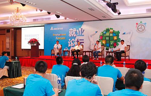 在決賽期間,為了讓參賽同學有更多的收獲,大賽組委會舉辦了多場主題活動,包括“智能制造時代——工業(yè)機器人的機遇與挑戰(zhàn)”講座、就業(yè)論壇、“創(chuàng)新 協(xié)同 與智造同行-教師教學交流會”以及參觀臺達吳江生產(chǎn)基地等。在“智能制造時代——工業(yè)機器人的機遇與挑戰(zhàn)”講座中,臺達機電事業(yè)群機器人事業(yè)處處長彭志誠先生就智能制造時代的需求進行了探討,并以臺達的工業(yè)機器人為例,論述了工業(yè)機器人以應用需求為引導的發(fā)展思路。在就業(yè)論壇上,由資深人資專家、高校教師、媒體老總和用工企業(yè)代表所組成的嘉賓團,針對制造業(yè)宏觀大環(huán)境的發(fā)展趨勢闡述了各自的觀點,對即將步入職場的大學生進行職業(yè)規(guī)劃具有現(xiàn)實的啟迪意義。教師教學交流會則是專為高校教師設立,兩岸教師在此分享經(jīng)驗、交流心得。參觀臺達吳江生產(chǎn)基地,則是廣大師生最為期待的環(huán)節(jié)之一,臺達現(xiàn)代化的生產(chǎn)車間,對先進技術的應用,卓越的生產(chǎn)工藝都讓參觀師生贊嘆不已。