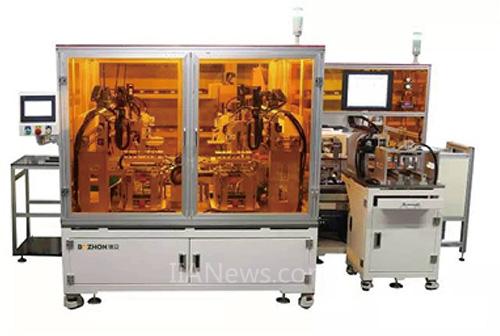 為保護(hù)電子產(chǎn)品電池殼不受刮傷和防止腐蝕,在電池殼生產(chǎn)出來后,在電池殼表面先貼覆了一層貼膜,在后續(xù)的工序中能夠有效防止磨傷或刮花殼體,可延長電池壽命。博眾(AHTE展位號:E7-C01)全自動貼膜機(jī)用于對產(chǎn)品的正反面自動貼膜,并對產(chǎn)品進(jìn)行保壓,保證保護(hù)膜貼附在產(chǎn)品上更牢固,保護(hù)膜供料采用伺服電機(jī)升降進(jìn)行供料,另外設(shè)備對產(chǎn)品高度進(jìn)行量測。設(shè)備優(yōu)勢:適用于貼附面積較大的保護(hù)膜;可記錄生產(chǎn)數(shù)量和產(chǎn)品良率并可以保存記錄便于查看追蹤生產(chǎn)狀況;柔性線體便于產(chǎn)品升級可快速修改切換以滿足生產(chǎn)需求。