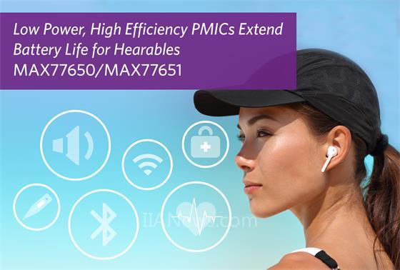 Maxim推出MAX77650/MAX77651電源管理IC (PMIC),幫助Bluetooth?耳機、活動監(jiān)測、智能服裝、智能手表及其它尺寸嚴格受限設(shè)備開發(fā)商提高電池壽命和效率。