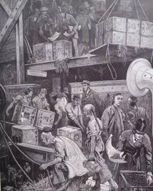 東印度公司商船正在中國裝運茶葉 圖/新浪博客