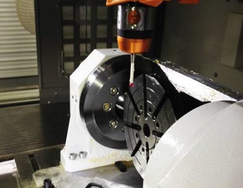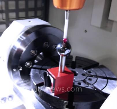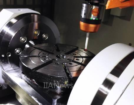 對于安裝了3+2軸回轉(zhuǎn)工作臺的機床,通過手動方式操作、手工編程,可使用工件測頭對兩個回轉(zhuǎn)軸的中心進行檢測。