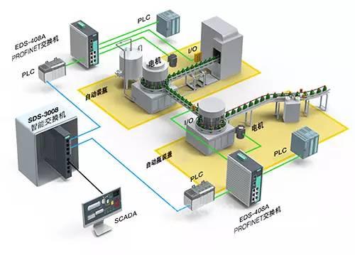 在建設(shè)裝瓶工廠時(shí),若其中的自動(dòng)裝瓶生產(chǎn)線基于 PROFINET 協(xié)議運(yùn)行,則部署支持 PROFINET 的交換機(jī)將有助于工程師實(shí)現(xiàn)瀏覽集成于 SCADA 系統(tǒng)中的網(wǎng)絡(luò)數(shù)據(jù)和狀況;由此,可確保提高工廠運(yùn)行的可靠性。同時(shí),由于SCADA 集成快速、簡(jiǎn)單,可加速故障處理速度,并縮短系統(tǒng)停機(jī)時(shí)間。