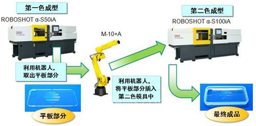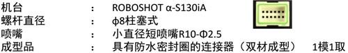 2) 搭載FANUC自家的副射臺,一臺設(shè)備二次射出,一個周期時(shí)間內(nèi)完成雙色成型,此種搭配在提高生產(chǎn)效率的同時(shí)還提高了空間的利用效率,向機(jī)臺的上部要空間