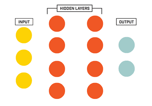 圖 1:輸入和輸出之間含有“深度”隱藏層的神經(jīng)網(wǎng)絡(luò)