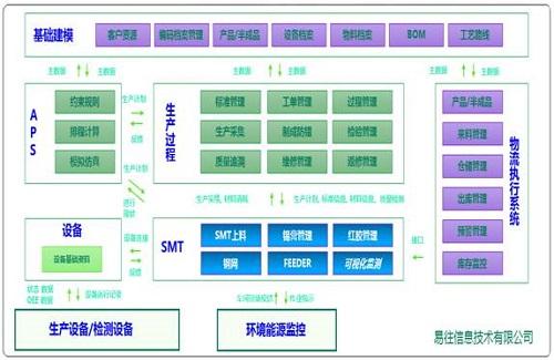 此架構(gòu)圖中從電子制造企業(yè)基礎(chǔ)建模、高級(jí)排產(chǎn)、生產(chǎn)過(guò)程監(jiān)控、SMT生產(chǎn)線的過(guò)程追蹤、以及與物流執(zhí)行系統(tǒng)、設(shè)備層面上的銜接,形成閉環(huán)的信息流體系,并且強(qiáng)調(diào)綠色生產(chǎn)、環(huán)境能源監(jiān)控,打造電子行業(yè)智能工廠,根據(jù)工信部對(duì)智能制造的評(píng)級(jí),實(shí)施該系統(tǒng),可使電子企業(yè)實(shí)現(xiàn)橫向和縱向的集成,達(dá)到智能制造的三級(jí),降低成本、提高產(chǎn)品質(zhì)量、生產(chǎn)效率和客戶滿意度、搶占行業(yè)制高點(diǎn)。