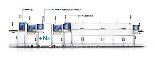 針對(duì)SMT電子制造點(diǎn)膠需求,特別推出自動(dòng)上下料、精密噴射點(diǎn)膠、MARK機(jī)、AVI點(diǎn)膠效果檢測(cè)、膠水加熱固化等一站式整體解決方案。