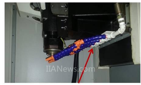 主軸刀具外冷:零件在加工過(guò)程中,工件和刀具發(fā)熱,影響加工精度及刀具損耗。刀具外冷主要為了降低工件加工溫度,減小損耗;另外,沖洗刀具和零件上的堆積的碎屑。