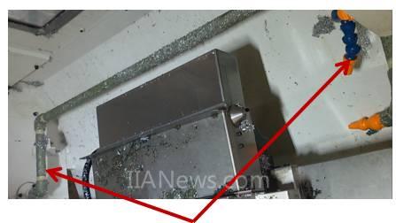 機(jī)內(nèi)清洗:機(jī)床加工時(shí),加床底部四個(gè)角落容易積屑,時(shí)間長(zhǎng)了,容易堆積,會(huì)阻礙機(jī)床內(nèi)部水循環(huán)、損傷工作臺(tái)面。機(jī)床底部四周可以安裝管道,進(jìn)行沖洗。