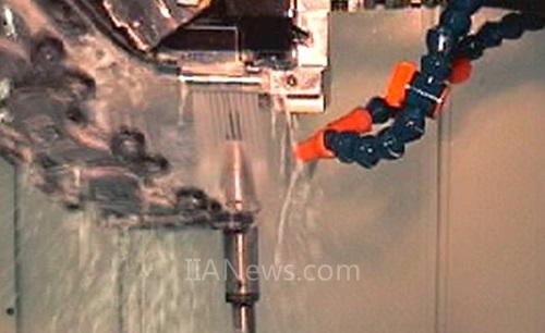 刀具內(nèi)冷:高壓內(nèi)冷(刀具內(nèi)部壓力最高可達(dá)到10MPa),常使用在加工鉆孔工藝上。在小孔深孔加工中,外澆切削液無(wú)法進(jìn)入孔內(nèi),鉆頭的切削刃無(wú)法進(jìn)行有效冷卻,容易斷刀(深孔鉆頭價(jià)格較貴),產(chǎn)生廢件,損壞刀具,影響加工效率。