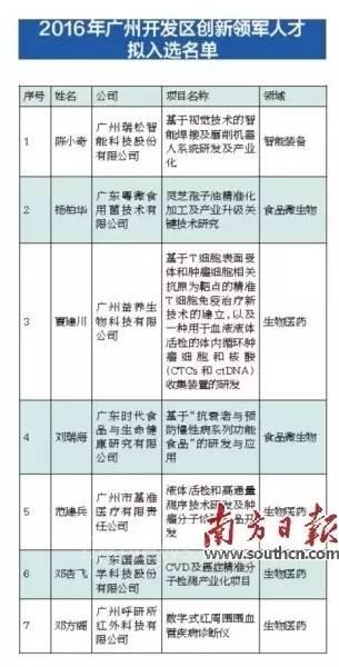 圖、2016年廣州開發(fā)區(qū)創(chuàng)新領(lǐng)軍人才項目入選公示